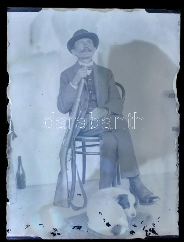 1915 Ülő férfi puskával, üvegnegatív, 12×9 cm https://www.darabanth.com/hu/397-Gyorsarveres/397.0/Fotomuveszet/Foto~500021/1915-Ulo-ferfi-puskaval-uvegnegativ-12C3979-cm~II2421000