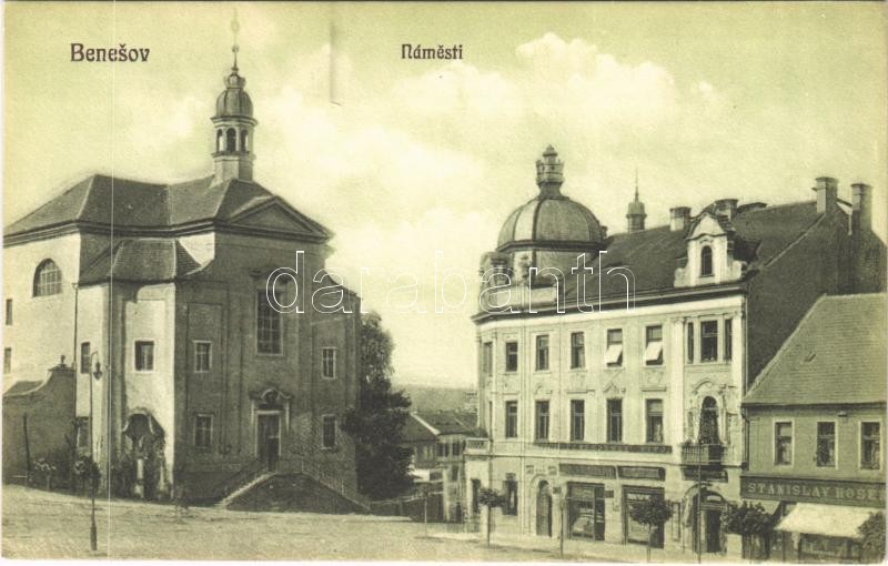 Leírás: Benesov, Beneschau; Namesti, Benesovske Pivo, Stanislav Rosen. / square, beer hall, shops