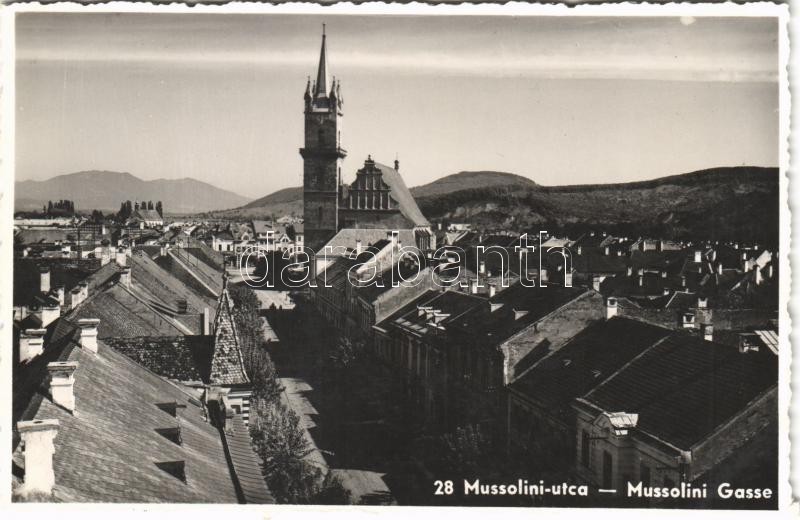 Beszterce, Bistritz, Bistrita; Mussolini utca / street https://www.darabanth.com/hu/397-Gyorsarveres/397.0/Kepeslapok/Erdely~1000005/Beszterce-Bistritz-Bistrita-Mussolini-utca-street~II2420048