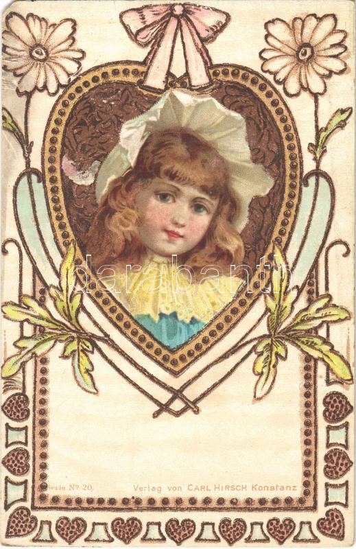 Leírás: Children art postcard. Verlag v. Carl Hirsch Serie No. 20. Art Nouveau, floral, litho (EM)