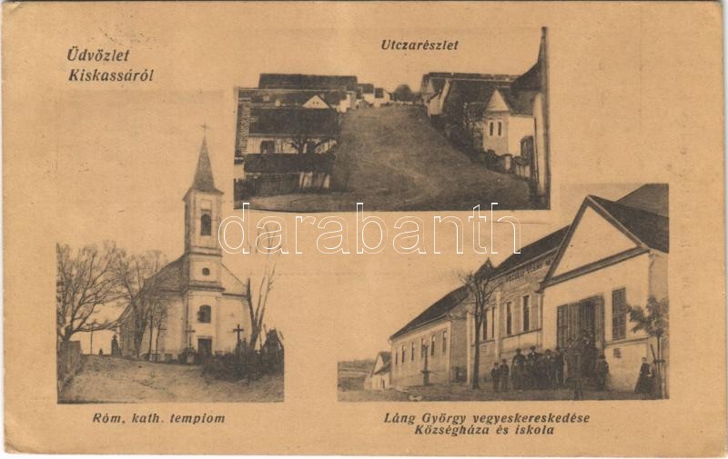 1942 Kiskassa, utca, Római katolikus templom, Láng György vegyeskeresk... https://www.darabanth.com/hu/397-Gyorsarveres/397.0/Kepeslapok/Magyarorszag~1000004/1942-Kiskassa-utca-Romai-katolikus-templom-Lang-Gyorgy-vegyeskereskedese-kozseghaza-isko~II2419630