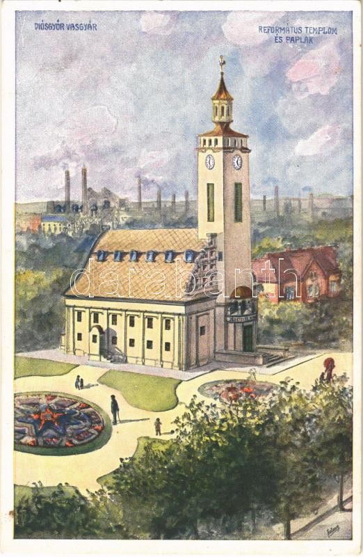 Diósgyőr (Miskolc), Vasgyári református templom és paplak. művészlap https://www.darabanth.com/hu/397-Gyorsarveres/397.0/Kepeslapok/Magyarorszag~1000004/Diosgyor-Miskolc-Vasgyari-reformatus-templom-es-paplak-muveszlap~II2417484
