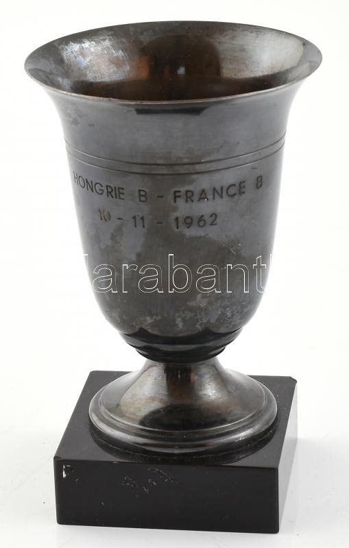 Leírás: Ezüstözött alpakka foci serleg Hongrie B - France B. 1961. (10-11) márvány talapzaton 12 cm
