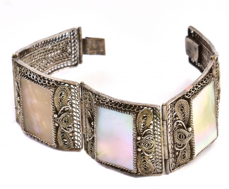 Leírás: Ezüstözött filigrán karkötő gyöngyház berakással 20 cm