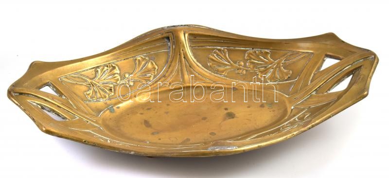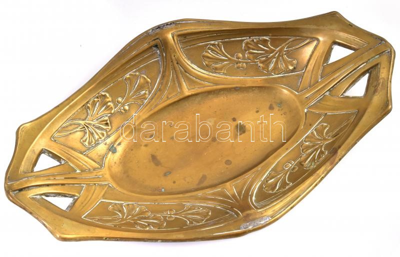 Leírás: Szecessziós stílusú réz kínáló tál, kopott, 33x20x5 cm