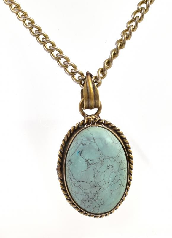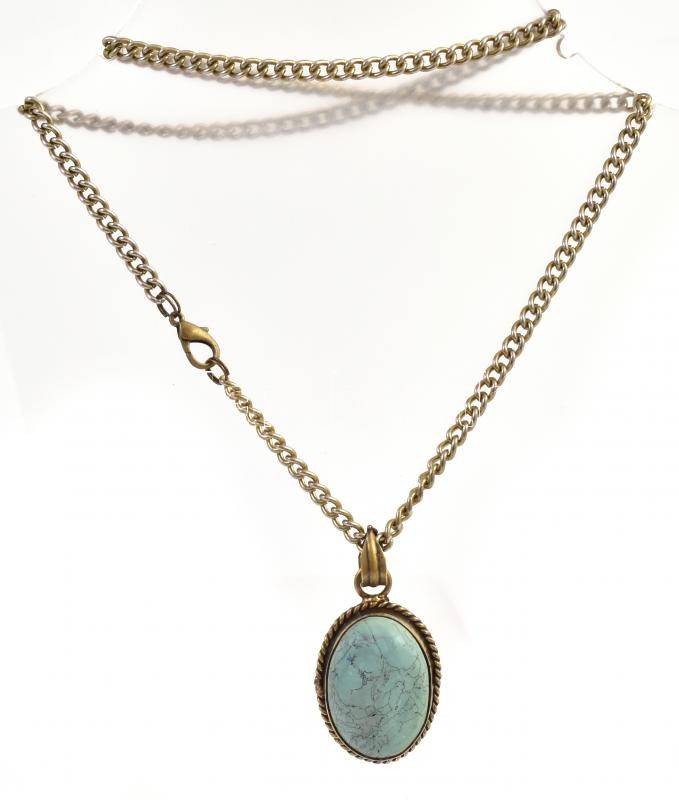 Leírás: Türkiz medálos fém nyaklánc, h: 56 cm