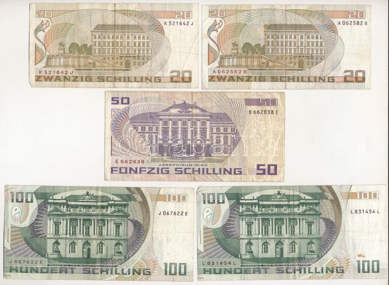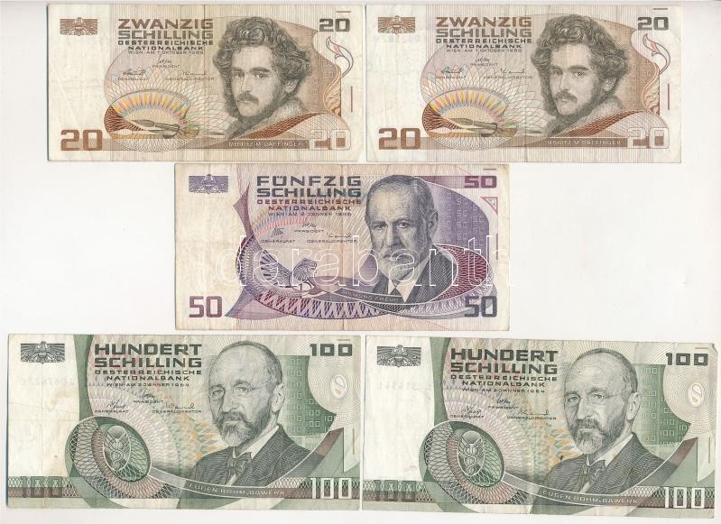 Austria 1... https://www.darabanth.com/hu/397-Gyorsarveres/397.0/Numizmatika/Kulfoldi-bankjegyek~1500013/Ausztria-1984-100Sch-2x-plus-1986-20Sch-2x-plus-50Sch-TIII-Austria-1984-100-Schilling-2x-plus-1986~II2415966