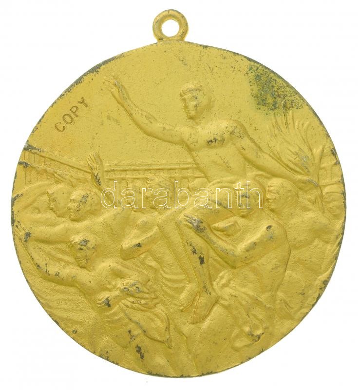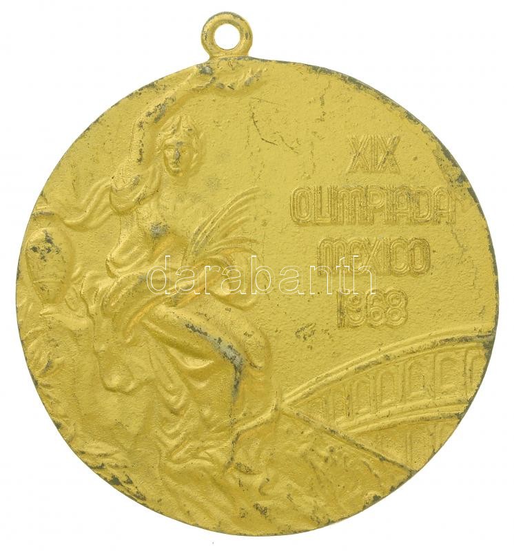 1968. "XIX. Olimpia Mexikó 1968" kétoldalas, aranyozott Br emlékérem füllel, az olimpiai díjérem jelzett másolata (58mm) T:2-,3 aranyozás kopott