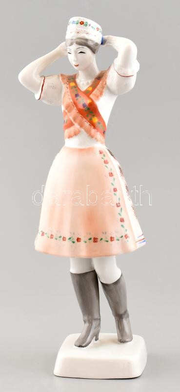 Leírás: Hollóházi népviseletbe öltözött lány, kézzel festett, jelzett, hibátlan m:28 cm