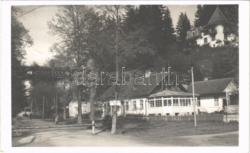 1942 Borszék, Borsec; Fürdő és borvíz üzlet díszkapu, "Szekér for... https://www.darabanth.com/hu/398-Gyorsarveres/398.0/Kepeslapok/Erdely~1000005/1942-Borszek-Borsec-Furdo-es-borviz-uzlet-diszkapu-Szeker-forgalom-tilos-tabla-spa-g~II2423841