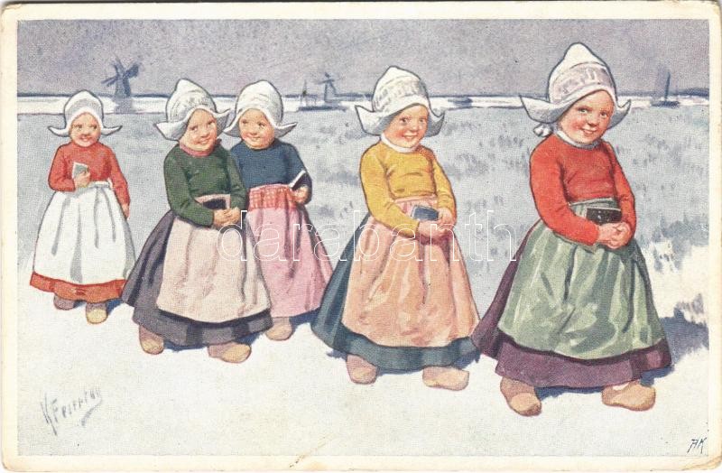 Children art postcard, folklore. B.K.W.I. 190-4. s: K. Feiertag (EK) https://www.darabanth.com/hu/398-Gyorsarveres/398.0/Kepeslapok/Gyerek~1000045/Children-art-postcard-folklore-BKWI-190-4-s-K-Feiertag-EK~II2425320