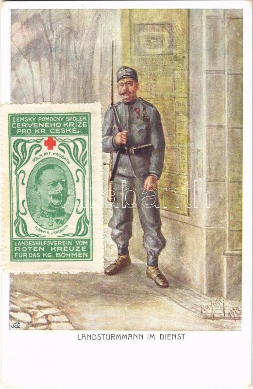 Landsturmmann im Dienst / WWI Austro-Hungarian K.u.K. military art postcard, support fund. Offizielle Karte des Kriegshilfsbüros Invaliden-Hilfsaktion Nr. 21-2. artist signed
