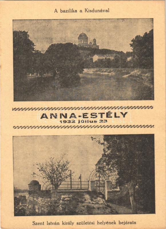 Leírás: Esztergom, Bazilika a Kisdunával, Szent István király születési helyének bejárata. Anna-estély 1932. július 23.