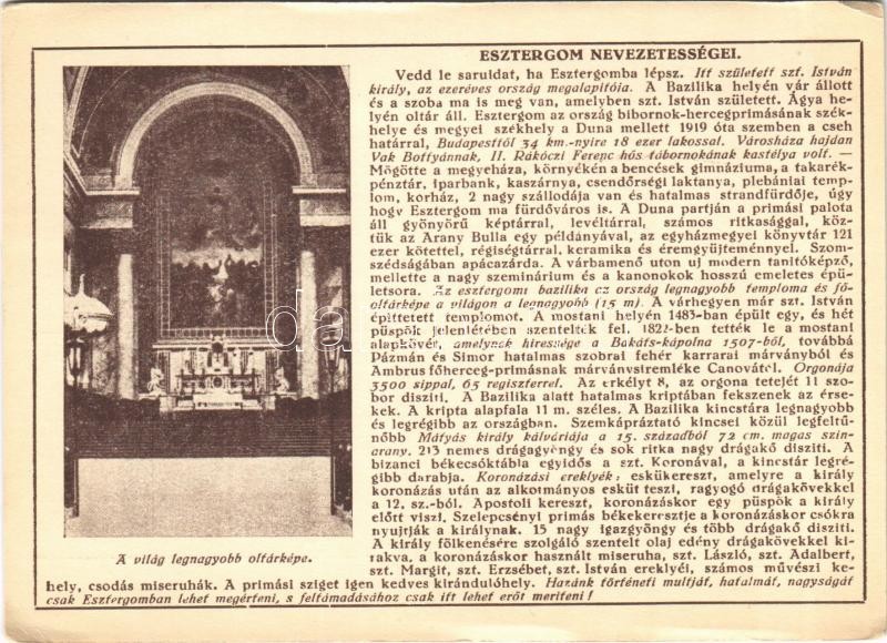 Leírás: Esztergom, Város nevezetességei: A világ legnagyobb oltárképe, Bazilika. Farkasfalvi Kornél kiadása (gyűrődés / crease)
