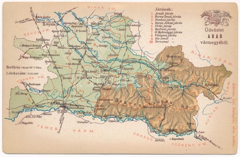 Arad vármegye térképe. Kiadja Károlyi Gy. / Map of Arad county https://www.darabanth.com/hu/398-Gyorsarveres/398.0/Kepeslapok/Terkep~1000069/Arad-varmegye-terkepe-Kiadja-Karolyi-Gy-Map-of-Arad-county~II2430093
