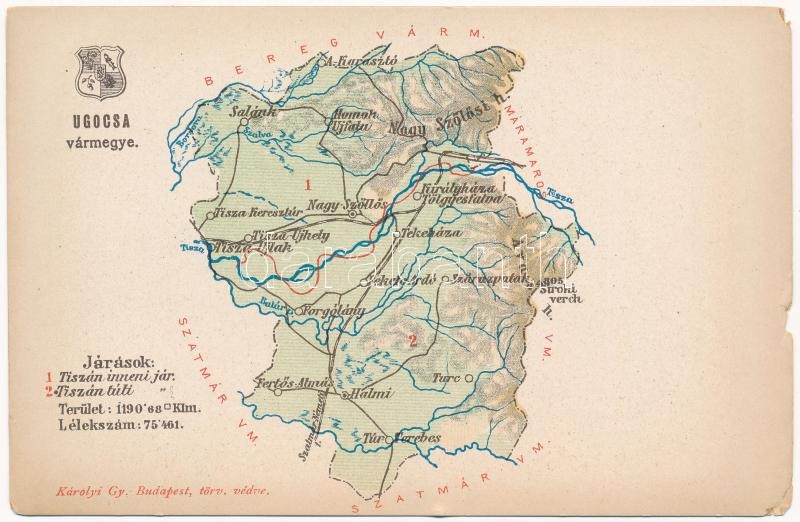 Ugocsa vármegye térképe. Kiadja Károlyi Gy. / Map of Ugocea county (sz... https://www.darabanth.com/hu/398-Gyorsarveres/398.0/Kepeslapok/Terkep~1000069/Ugocsa-varmegye-terkepe-Kiadja-Karolyi-Gy-Map-of-Ugocea-county-szakadasok-tears~II2430063