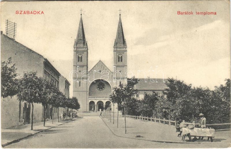 1912 Szabadka, Subotica; Barátok temploma, utcai árus / church, street... https://www.darabanth.com/hu/398-Gyorsarveres/398.0/Kepeslapok/Vajdasag~1000009/1912-Szabadka-Subotica-Baratok-temploma-utcai-arus-church-street-vendor~II2428621