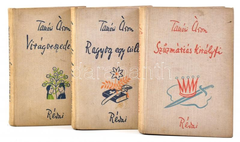 Leírás: Tamási Áron 3 műve: Szűzmáriás királyfi.; Ragyog egy csillag.; Virágveszedelem. Bp., 1937-1938.,Révai. Kiadói egészvászon-kötések.
