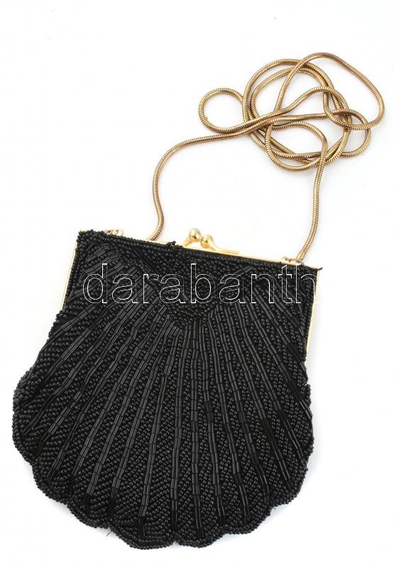 Leírás: Carla Marchi fekete gyöngyökkel díszített kis színházi táska, 16x15 cm
