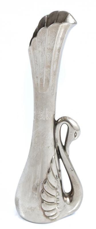 Leírás: Ezüstszínű hattyús fém váza, kis kopásnyomokkal, m: 17,5 cm