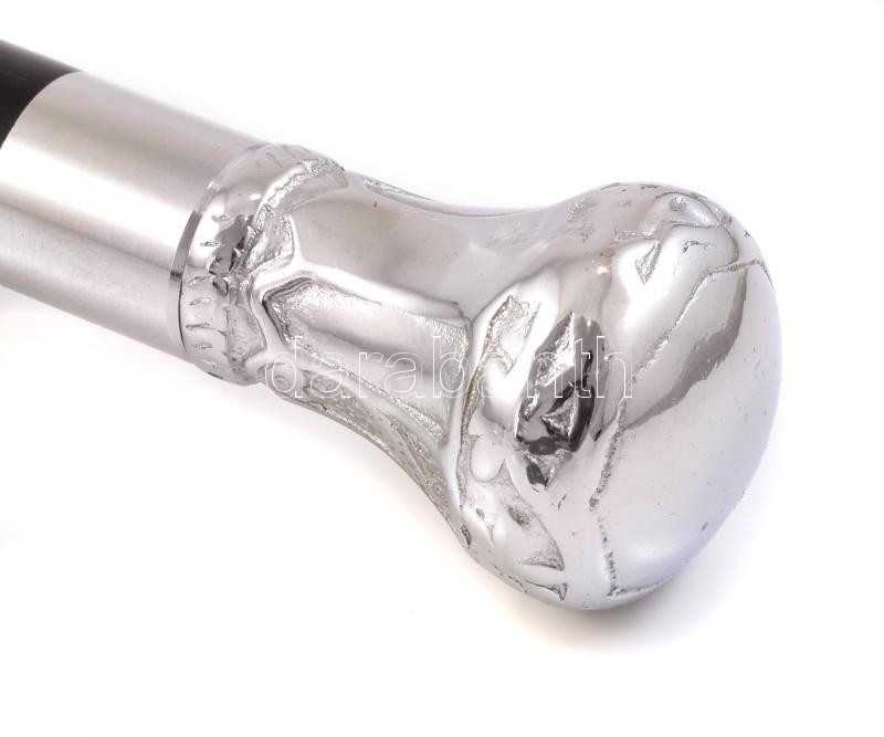Leírás: Fa sétabot, fém fogantyúval, gumi talppal, kopott, m: 92 cm