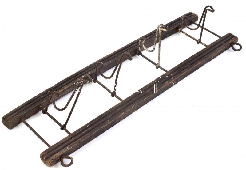 Leírás: Fali fogas, fa-fém, kopott, 16x48 cm