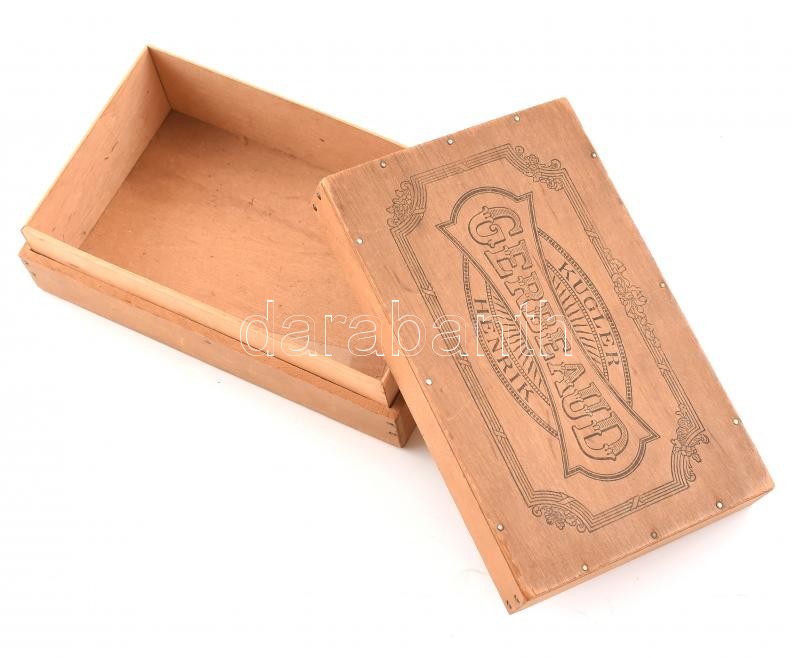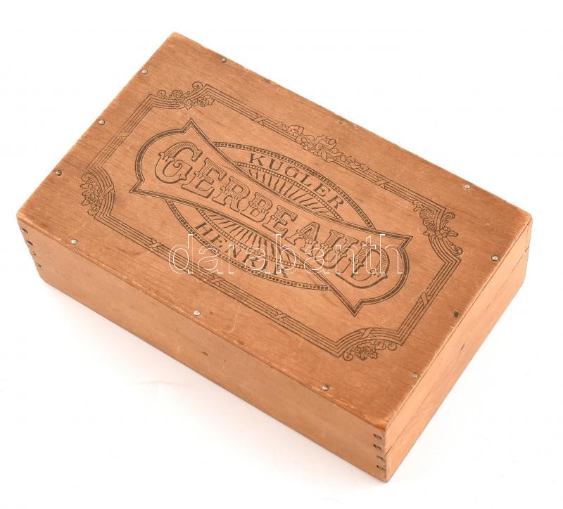 Gerbaud Kugler Henrik fa doboz, 16×10×5 cm https://www.darabanth.com/hu/398-Gyorsarveres/398.0/Mutargy-papirregiseg-egyeb/Bolhapiac~500013/Gerbaud-Kugler-Henrik-fa-doboz-16C39710C3975-cm~II2426054