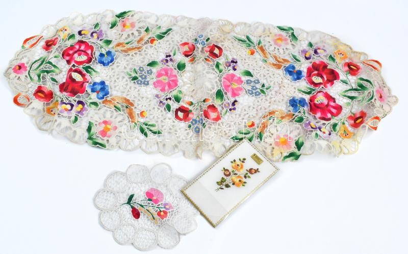 Leírás: Horgolt kalocsai mintás terítők, a legnagyobb 75x31 cm