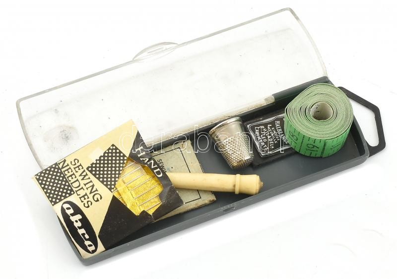 Kézi varrókészlet: Tűtartó, gyűszű, tű stb., műanyag tartóban https://www.darabanth.com/hu/398-Gyorsarveres/398.0/Mutargy-papirregiseg-egyeb/Bolhapiac~500013/Kezi-varrokeszlet-Tutarto-gyuszu-tu-stb-muanyag-tartoban~II2431296