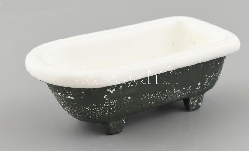 Leírás: Öntöttvas játékkád, kis kopásnyomokkal, h: 13 cm