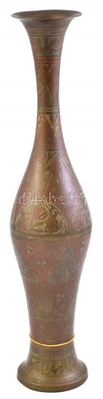 Leírás: Orientális bronz váza k ézi vésett floreális díszítéssel M: 40 cm