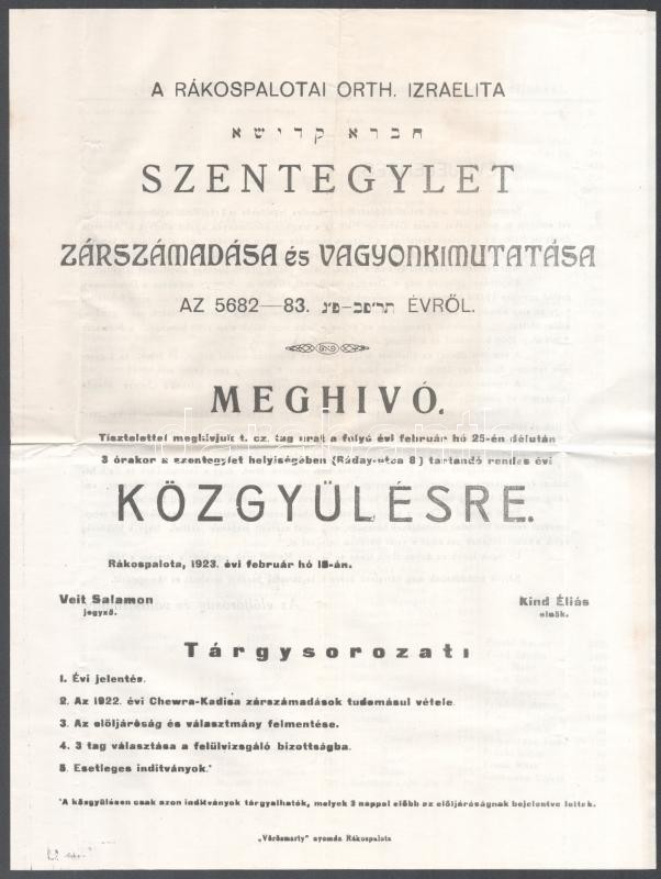 1923 A Rákospalptai Orth Izraelit Chewra Kadisa Szentegylet zárszámadá... https://www.darabanth.com/hu/398-Gyorsarveres/398.0/Mutargy-papirregiseg-egyeb/Judaika~500026/1923-A-Rakospalptai-Orth-Izraelit-Chewra-Kadisa-Szentegylet-zarszamadasa-4-p~II2427835