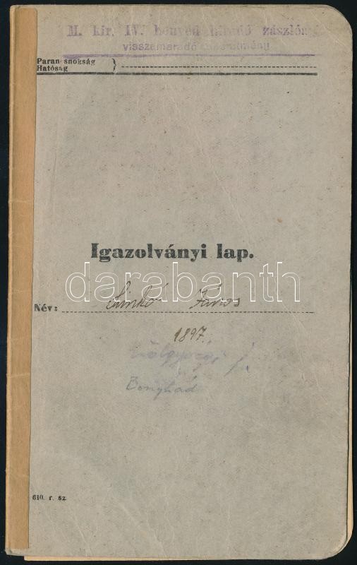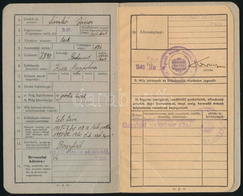 1940 Pécs, M. kir. IV. honvéd híradó zászlóalj visszamaradó különítmén... https://www.darabanth.com/hu/398-Gyorsarveres/398.0/Mutargy-papirregiseg-egyeb/Militaria~500029/1940-Pecs-M-kir-IV-honved-hirado-zaszloalj-visszamarado-kulonitmeny~II2428874