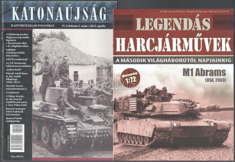 Leírás: Katonaújság, hadtörténelmi folyóirat 3 db lapszáma (2011 február ésjúnius, 2013 április) + Legendás harcjárművek, M1 Abrams