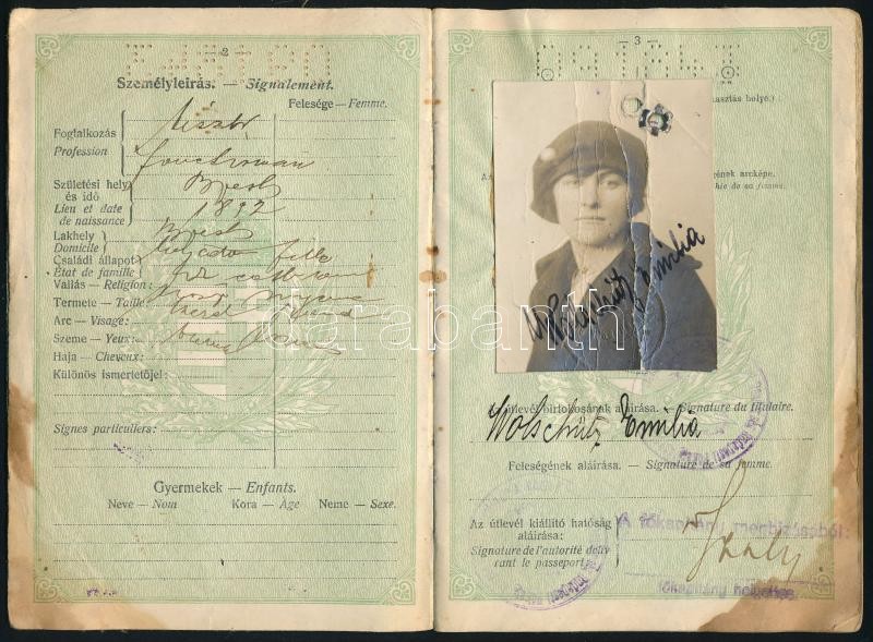 1929 Bp., Magyar Királyság által kiállított fényképes útlevél, foltos ... https://www.darabanth.com/hu/398-Gyorsarveres/398.0/Mutargy-papirregiseg-egyeb/Okmanyok~500019/1929-Bp-Magyar-Kiralysag-altal-kiallitott-fenykepes-utlevel-foltos-Hungarian-passport-~II2425522