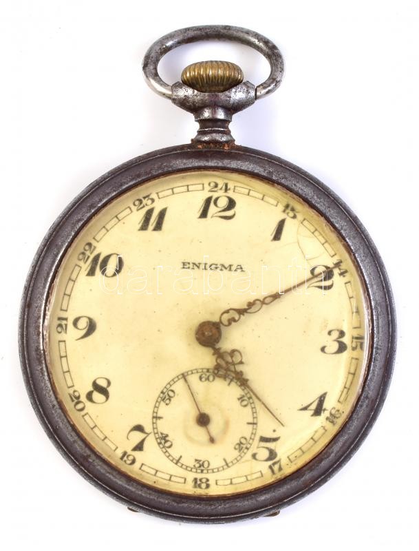 Enigma fém tokos zsebóra, működő szerkezettel, jó állapotban d: 48 mm https://www.darabanth.com/hu/398-Gyorsarveres/398.0/Mutargy-papirregiseg-egyeb/Orak~500011/Enigma-fem-tokos-zsebora-mukodo-szerkezettel-jo-allapotban-d-48-mm~II2427081