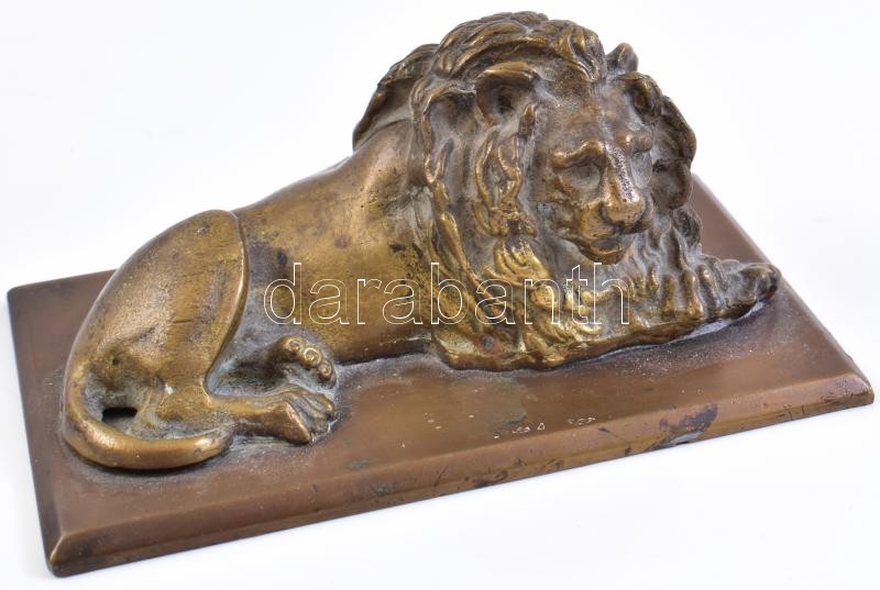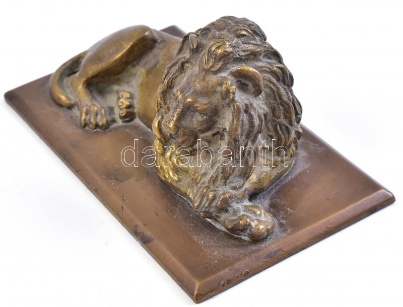 Bronz oroszlános levélnehezék. Jelzés nélkül. h: 14 cm, m: 7 cm https://www.darabanth.com/hu/398-Gyorsarveres/398.0/Mutargy-papirregiseg-egyeb/Szobrok-kisplasztikak-plakettek~500010/Bronz-oroszlanos-levelnehezek-Jelzes-nelkul-h-14-cm-m-7-cm~II2430491