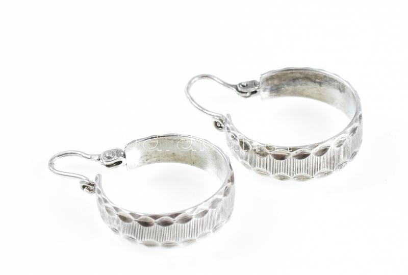 Leírás: Ezüst(Ag) csipkézett szélű karikafülbevaló-pár, jelzés nélkül, d: 1,8 cm, nettó: 4,7 g