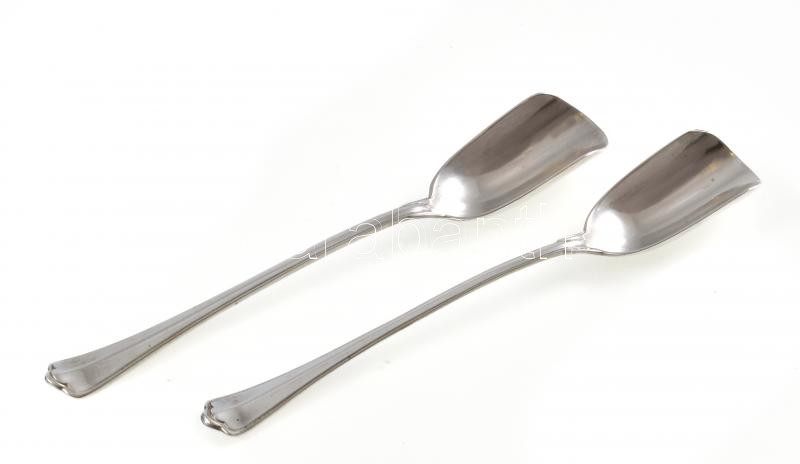 Leírás: Ezüst(Ag) hosszú nyelű fűszeres kanál, 2 db, jelzett, h: 12,7 cm, nettó: 28,1 g