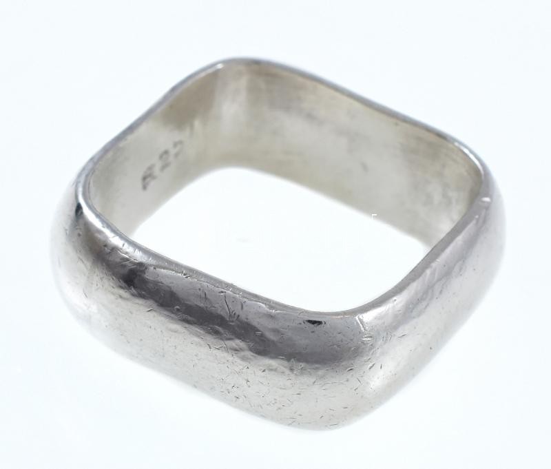 Ezüst(Ag) négyszögletes modern gyűrű, jelzett, méret: 55, nettó: 9,8 g https://www.darabanth.com/hu/398-Gyorsarveres/398.0/Nemesfem-Disztargyak-Orak-es-Ekszerek/Nemesfem-Disztargyak-Orak-es-Ekszerek~1500001/EzustAg-negyszogletes-modern-gyuru-jelzett-meret-55-netto-9-8-g~II2424408