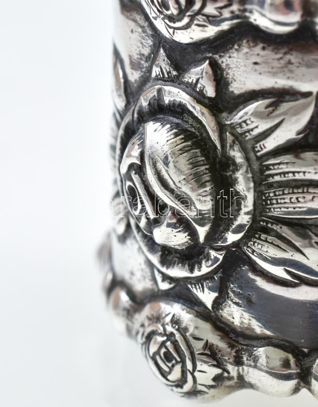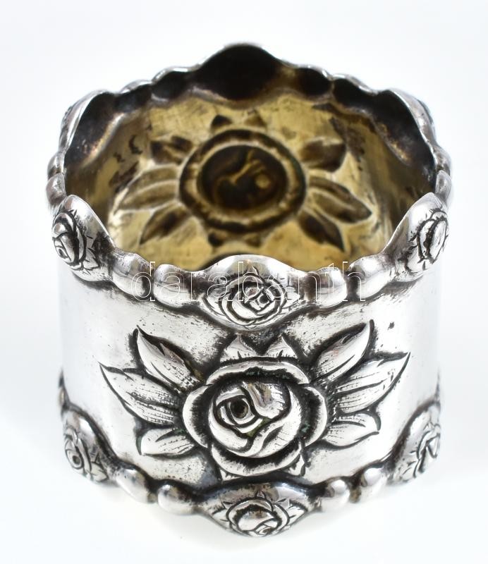 Leírás: Ezüst(Ag) rózsás szalvétagyűrű, jelzett, d: 4,8 cm, nettó: 38 g