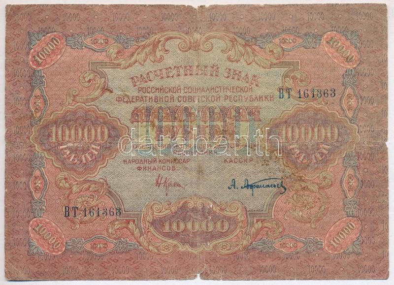 Szocialista Szövetségi Szovjet Köztársaság 1919. (1920.) 10.000R T:III... https://www.darabanth.com/hu/398-Gyorsarveres/398.0/Numizmatika/Kulfoldi-bankjegyek~2000013/Szocialista-Szovetsegi-Szovjet-Koztarsasag-1919-1920-10000R-TIII-szakadasok--Russian-S~II2432470