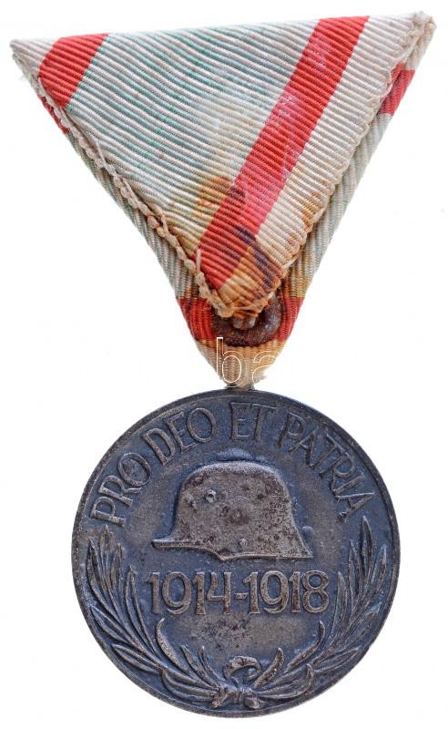 Hungary 1929. "Hungarian Commemorative War Medal with swords and a helmet" silver plated Br decoration with original ribbon C:F patina