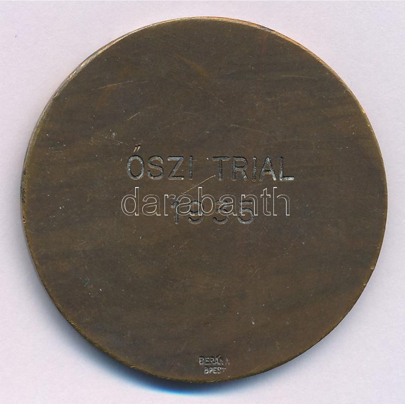 Leírás: 1935. "Királyi Magyar Automobil Club Részvételi Érem / K.M.A.C. Őszi Triál 1935" ezüstözött Br emlékérem, hátoldalán "BERÁN N. BPEST" gyártói jelzéssel (42mm) T:2 kis patina