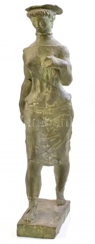 Leírás: Kerényi Jenő (1908-1975): Sétáló úrasszony festett terrakotta szobor jelzett, sérült, ragasztott m: 28 cm