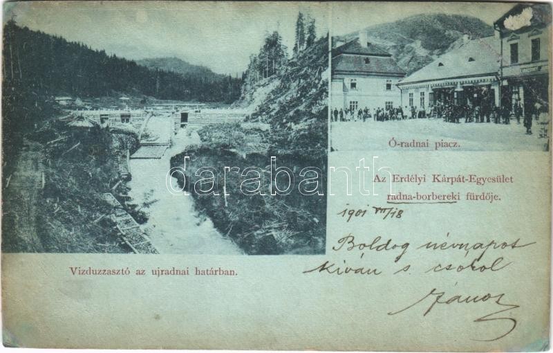 1901 Óradna, Alt-Rodna, Radna veche, Rodna; piac, Vízduzzasztó az újradnai határban, este, Az Erdélyi Kárpát Egyesület radna-borbereki fürdője / market, dam, Valea Vinului spa, night (r)