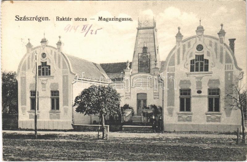 1914 Szászrégen, Reghin; Raktár utca, Cerbul Népbank, Florea Bogdan vi... https://www.darabanth.com/hu/399-Gyorsarveres/399.0/Kepeslapok/Erdely~1000050/1914-Szaszregen-Reghin-Raktar-utca-Cerbul-Nepbank-Florea-Bogdan-villa-Magazingasse-strada~II2442862