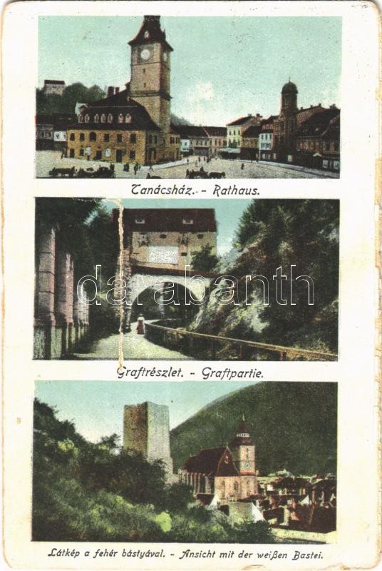 Brassó, Kronstadt, Brasov; Tanácsház, Graft, Fehér-bástya / town hall,... https://www.darabanth.com/hu/399-Gyorsarveres/399.0/Kepeslapok/Erdely~1000050/Brasso-Kronstadt-Brasov-Tanacshaz-Graft-Feher-bastya-town-hall-street-view-bastion-no~II2434616