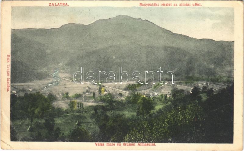 Leírás: Zalatna, Zlatna; Nagypataki részlet az almási úttal. Baik Traján kiadása / Valea mare cu drumul Almasulni (EB)