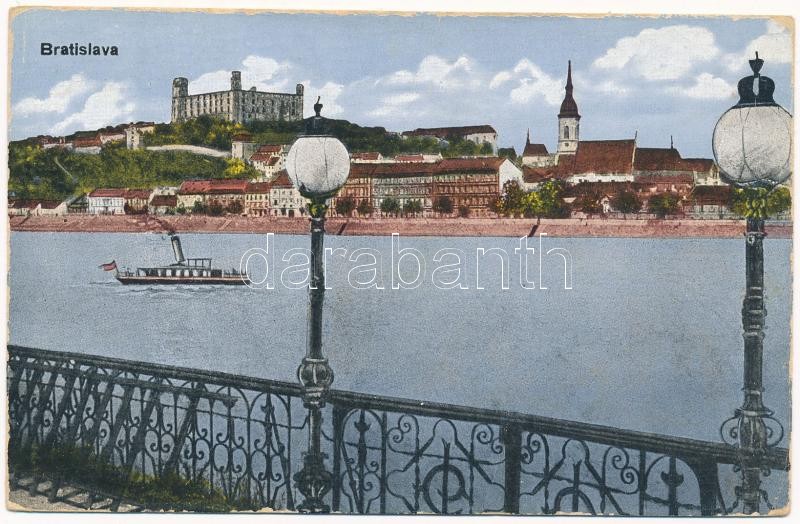 Pozsony, Pressburg, Bratislava; vár, gőzhajó / castle, steamship (ázot... https://www.darabanth.com/hu/399-Gyorsarveres/399.0/Kepeslapok/Felvidek~1000012/Pozsony-Pressburg-Bratislava-var-gozhajo-castle-steamship-azott-wet-damage~II2438048